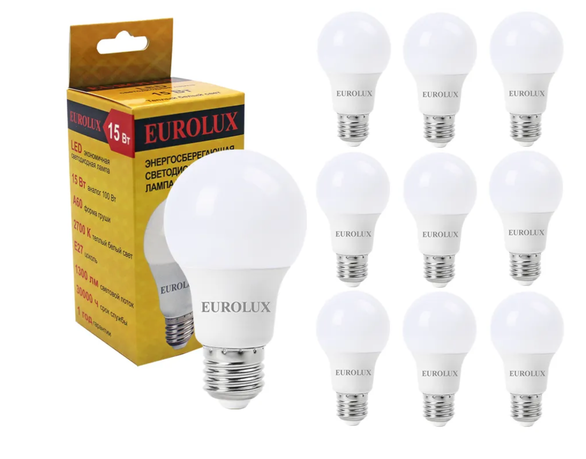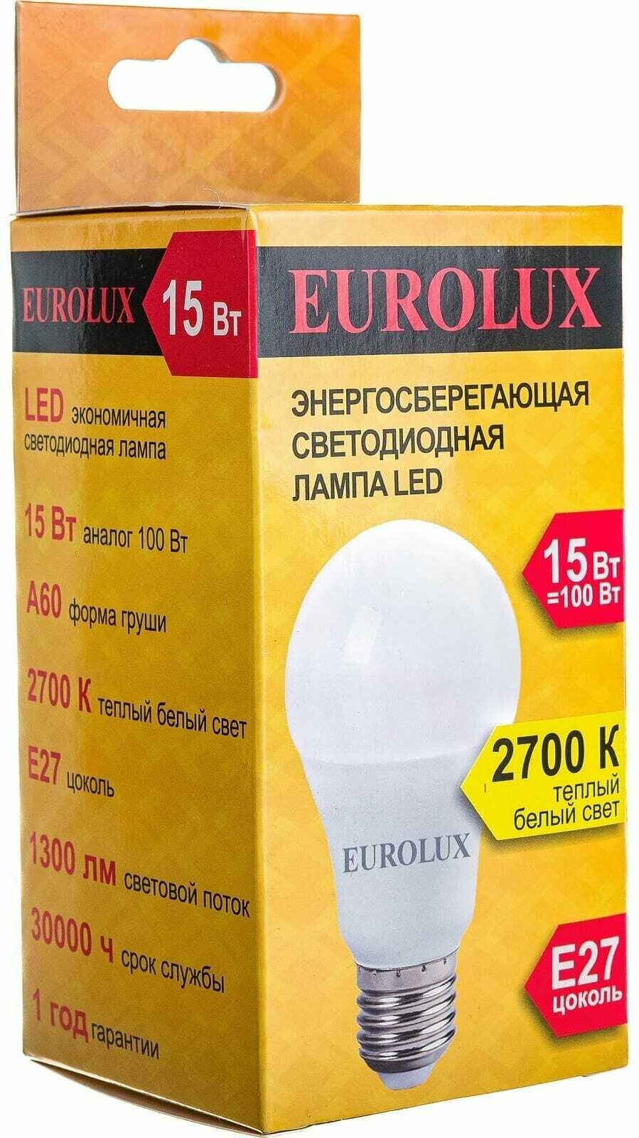 Лампа светодиодная Eurolux LL-E-A60-15W-230-2,7K-E27
