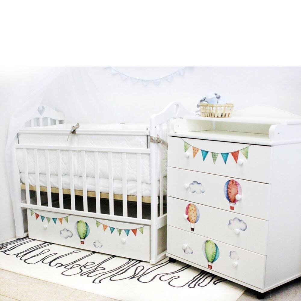 Кроватка By Twinz Путешествие на шаре с ящиком и поперечным маятником - белый