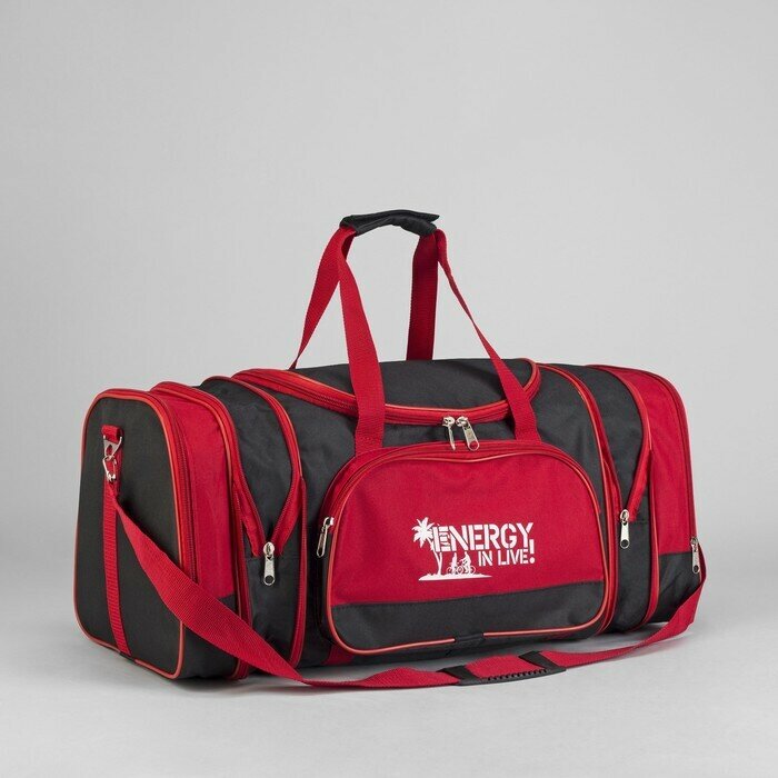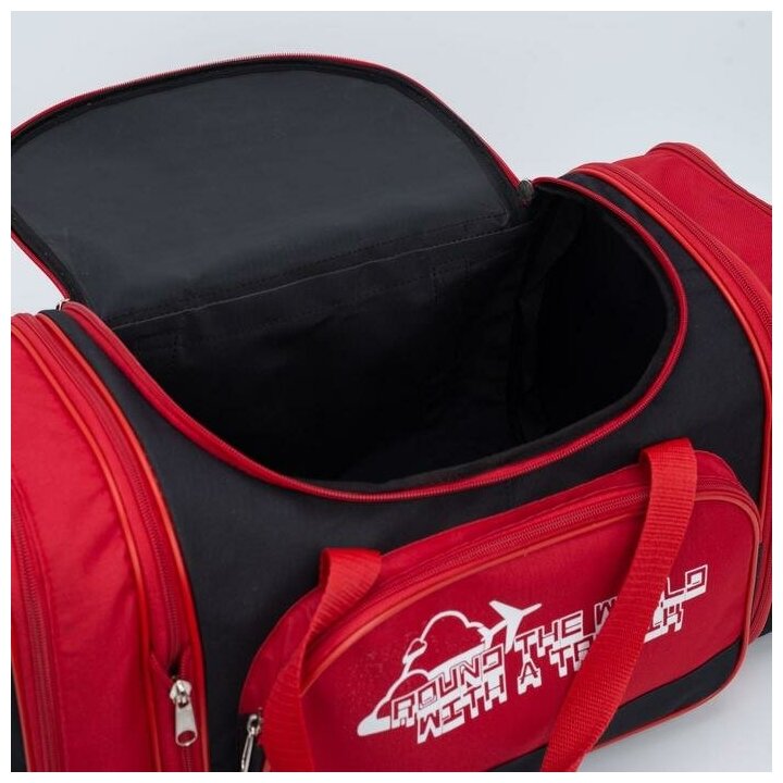 Сумка дорожная на молнии, с увеличением, 2 наружных кармана, длинный ремень, цвет чёрный/красный интересное: