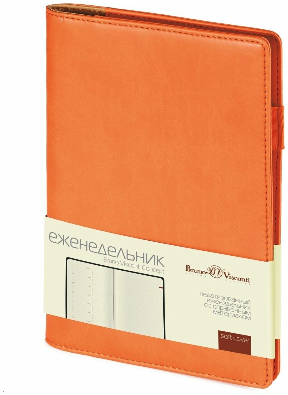Еженедельник недатированный А5, 64 листа на гребне CONCEPT, обложка искусственная кожа, оранжевый интересное: