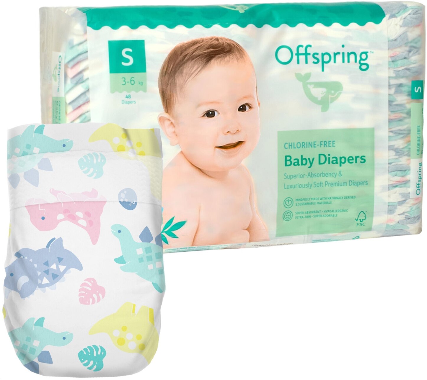 Offspring Подгузники Динозавры S (3-6 кг) 48 шт.
