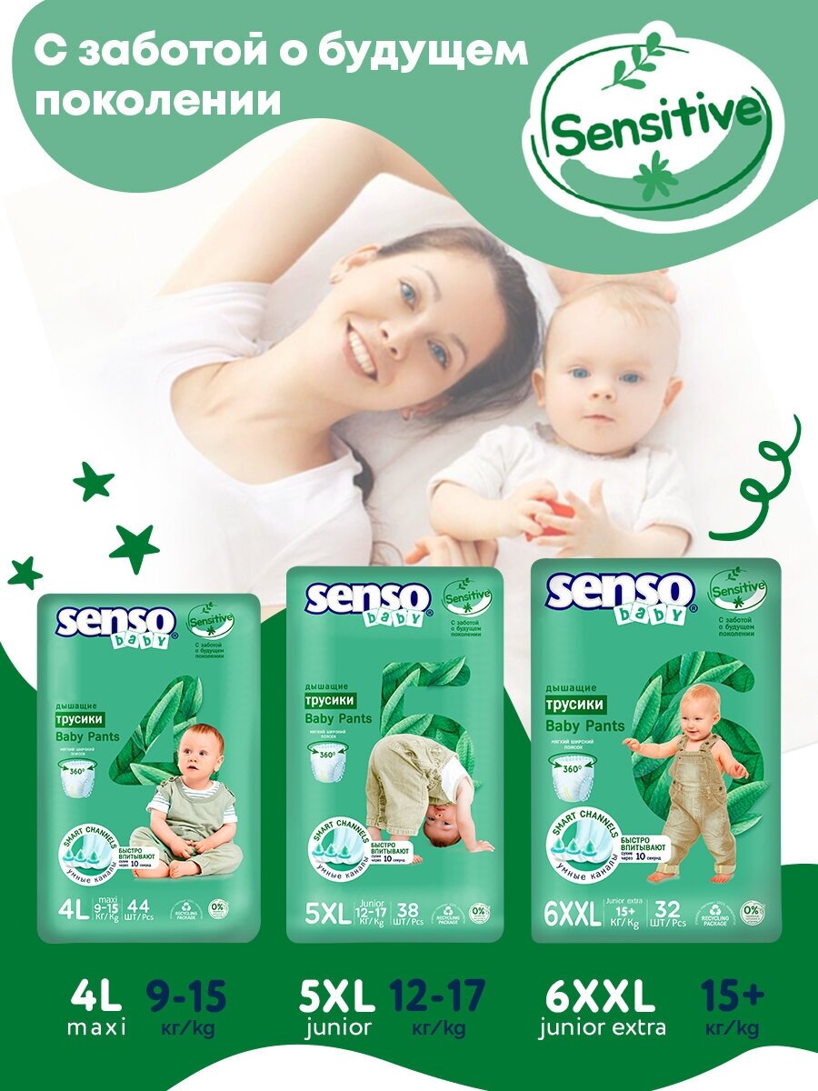 SENSO/сенсо Baby Трусики - подгузники SENSITIVE 6XXL junior extra (15-30кг) 32шт