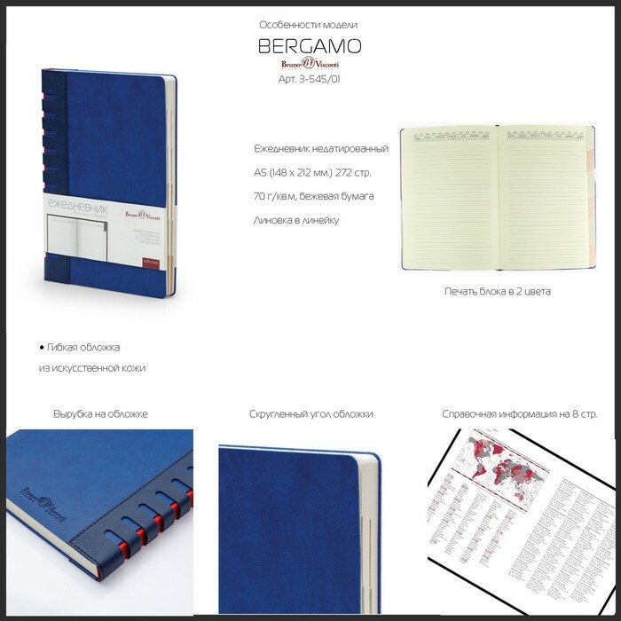 Ежедневник BrunoVisconti недатированный, А5 (148 х 212 мм.), "BERGAMO" синий 272 стр., Арт. 3-545/03