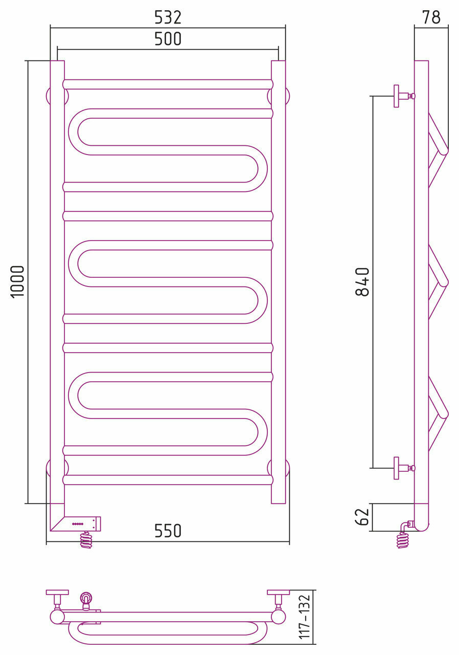 Полотенцесушитель Электрический Тругор Пэк сп 5 П 60х50 черный ВГП