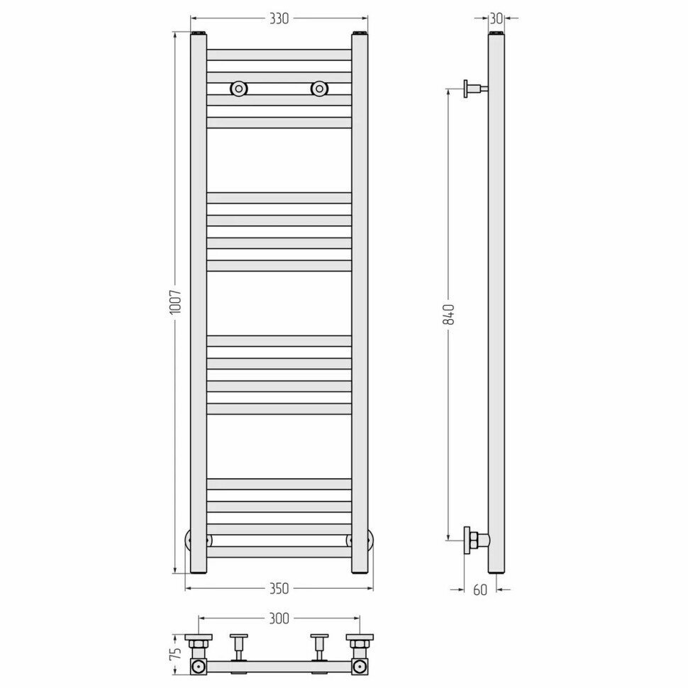 Полотенцесушитель 1000x300 водяной Сунержа Модус 00-0250-1030