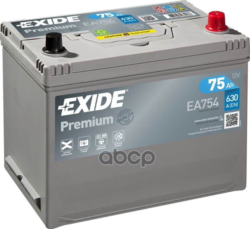Аккумулятор Exide Premium EA754 75 Ач 630А обр. пол.