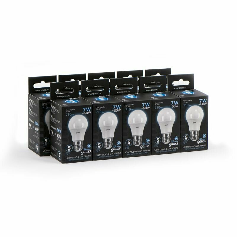 Набор из 10 штук Лампа Gauss A60 7W 710lm 4100K E27 LED 1/10/50