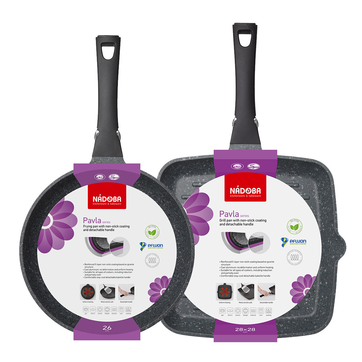 Глубокая сковорода с антипригарным покрытием и съёмной ручкой, 28 см, NADOBA, серия PAVLA