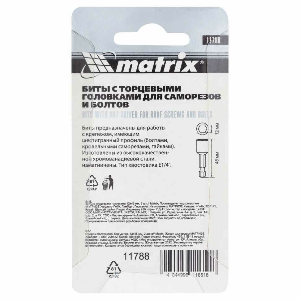 Биты с торцевыми головками Matrix 11788 12x45 мм, 2 шт