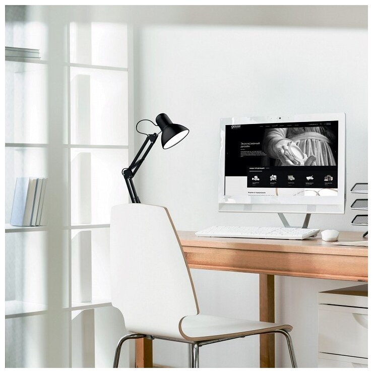 Светильник настольный Gauss модель GTL002 60W 220-240V E27 белый струбцина и основание 1/12