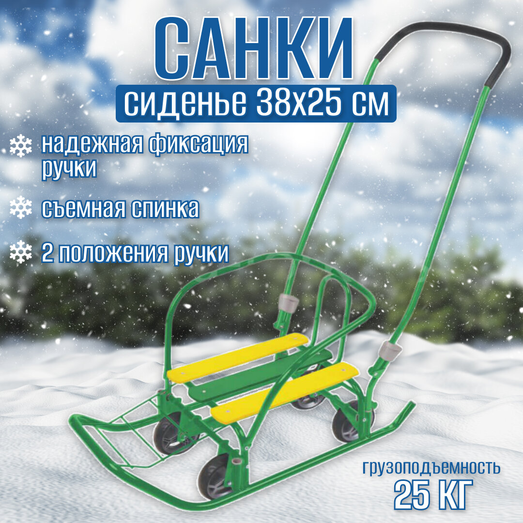 Санки Ника детям "Ветерок 7 универсал+", зеленые, съемная ручка, с колесами (В7У+/З)