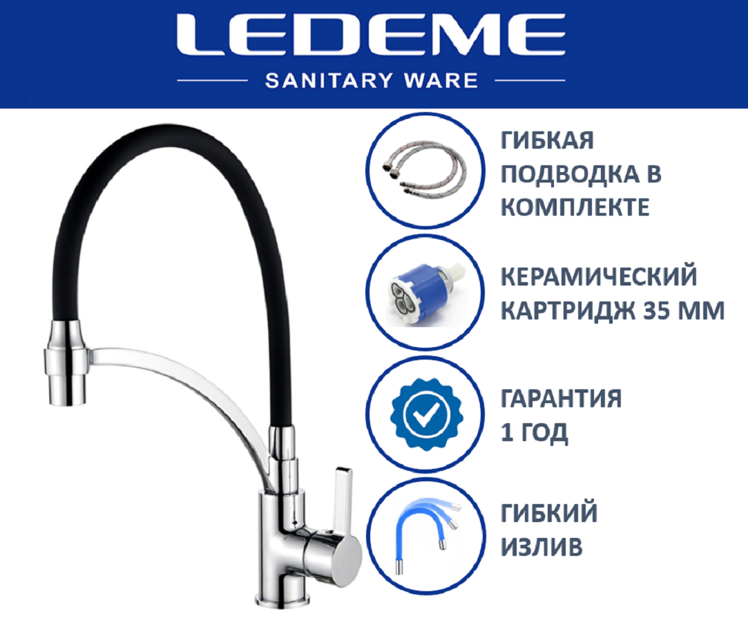Смеситель для кухни с гибким изливом Ledeme L4499-2 интересное: