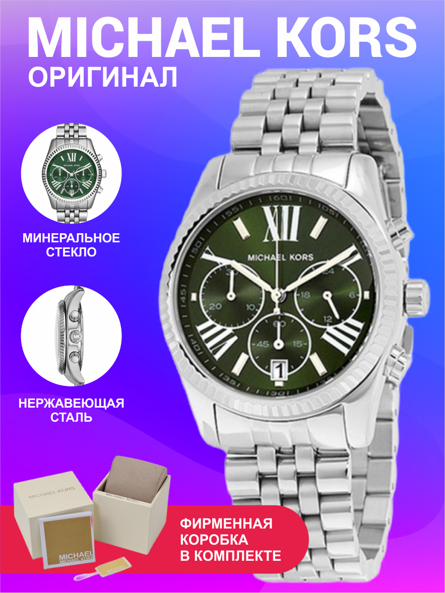 Наручные часы Michael Kors серебристые с зеленым циферблатом, хронограф