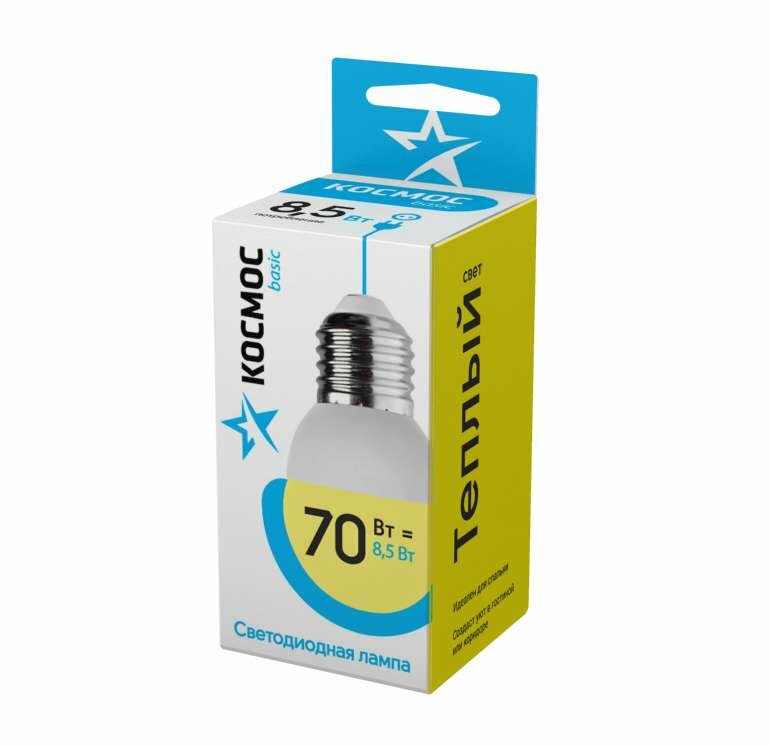 Светодиодная лампа Космос, 8.5 Вт, E27, 3000 K, шар, LED8.5wGL45E2730, теплый белый