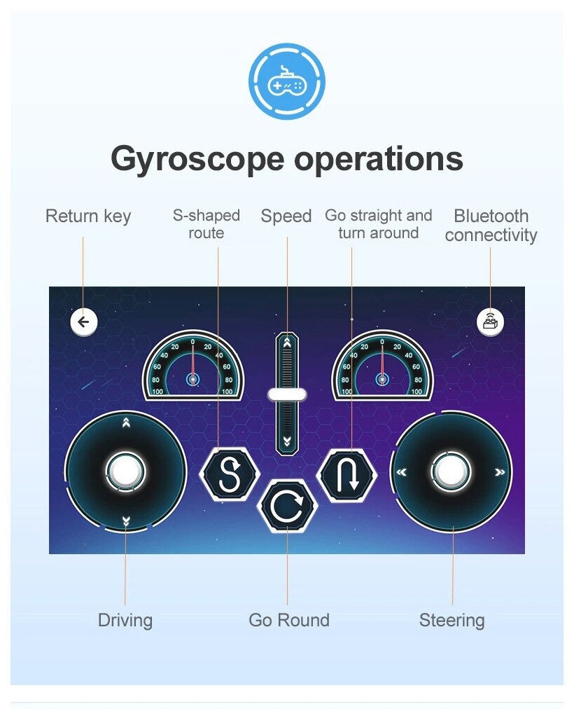 | Минусы: | Колёса вращаются, но машина не едет. Не хватает усилия крутящего момента. Указано что можно управлять с помощью телефона, однако приложение загрузить не удалось. |