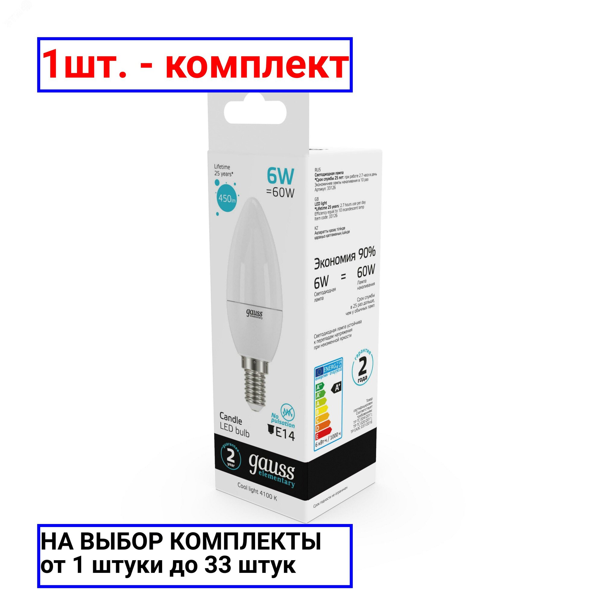 Ниже Вы можете прочитать отзывы на Лампа светодиодная gauss Elementary 33126, E14, C37, 6 Вт, 4100 К, ознакомится с подробными характеристиками, посмотреть интересные обзоры и фотографии на Лампа светодиодная gauss Elementary 33126, E14, C37, 6 Вт, 4100 К.