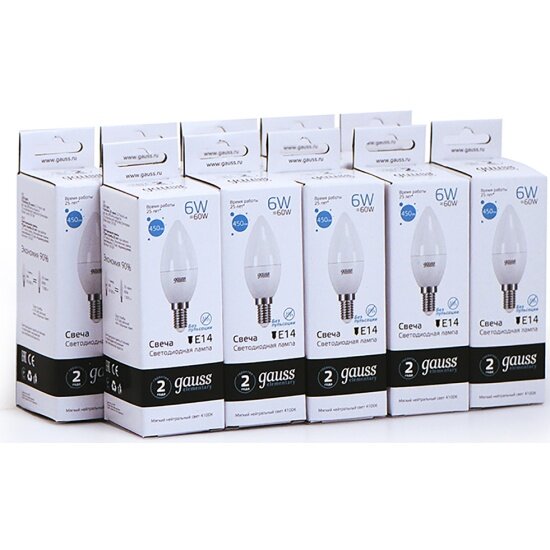 (10 шт)Лампа Gauss Elementary Свеча 6W 450lm 4100K Е14 LED 1/10/100
