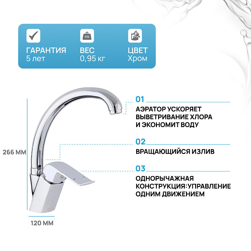 | Особенности | аэратор / поворотный излив |