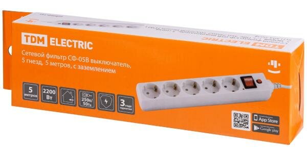 СохранитьTDM SQ1304-0018 Сетевой фильтр СФ-05В выключатель, 5 гнезд, 5 метров, с/з, ПВС 3х0,75мм2 10А/250В белый интересное: