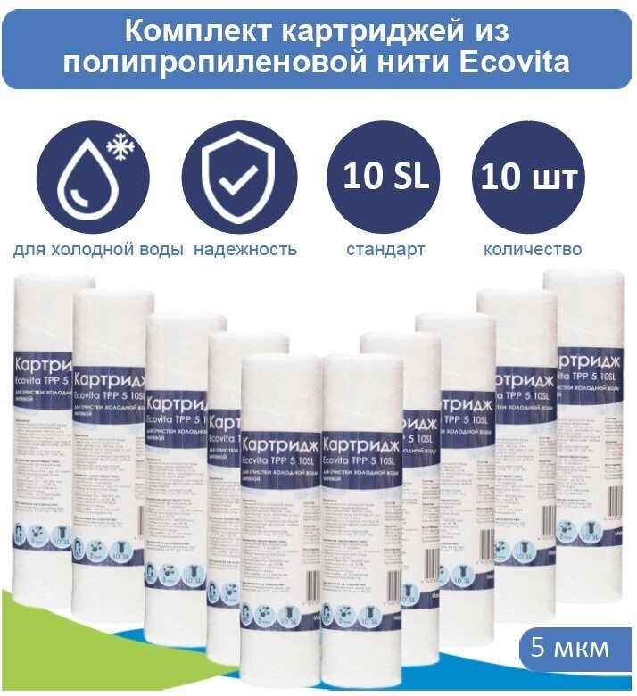 Ниже Вы можете прочитать отзывы на Картридж полипропиленовый Ecovita TPP 5 10SL для холодной воды - 10 шт., ознакомится с подробными характеристиками, посмотреть интересные обзоры и фотографии на Картридж полипропиленовый Ecovita TPP 5 10SL для холодной воды - 10 шт..