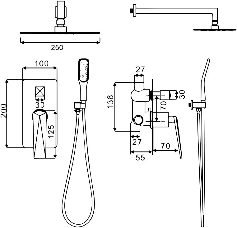 | Дополнительная информация | цвет черный/хром; ширина верхнего душа: 250 мм |