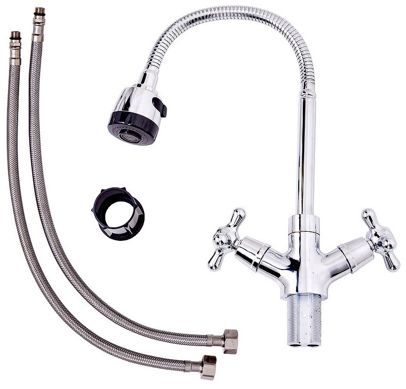 Купить Смеситель для кухни с гибким изливом двухвентильный OneLife P03-004cr, хром