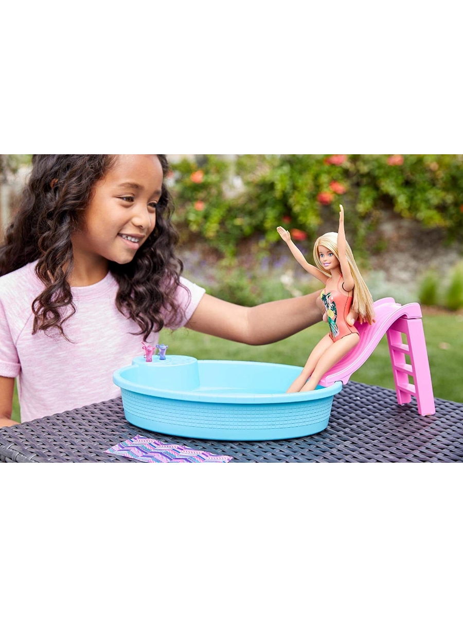 Кукла Игровой набор с куклой Барби и бассейном c горкой Barbie