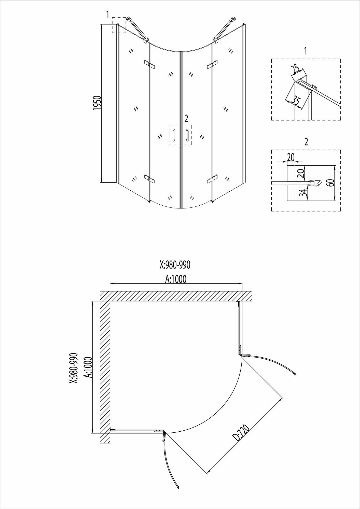 Душевой уголок Niagara Nova NG-6816-08 BLACK (100*100*190) полукруг, двери распашные