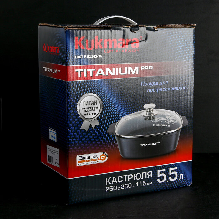Купить KUKMARA Кастрюля квадратная Titanium pro, 5,5 л, со стеклянной крышкой, антипригарное покрытие