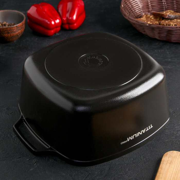 Кастрюля квадратная Titanium pro, 5.5 л, со стеклянной крышкой, антипригарное покрытие