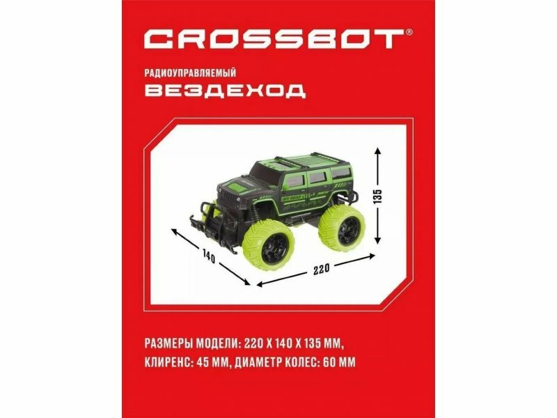 Машинка на радиоуправлении Crossbot джип на пульте Трофи Герой зеленый