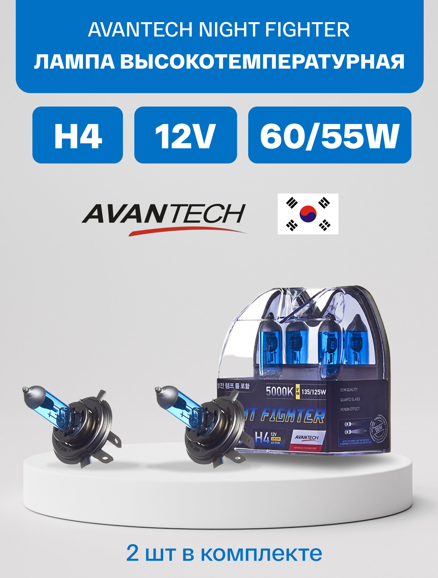 Лампа галогенная высокотемпературная Avantech H4 12V 60/55W (135/125W) 5000K, комплект 2 шт. интересное: