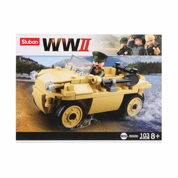 Конструктор для детей блочный развивающий амфибия WWII военный автомобиль машина 103 детали M38-B0690 подарок мальчику Sluban
