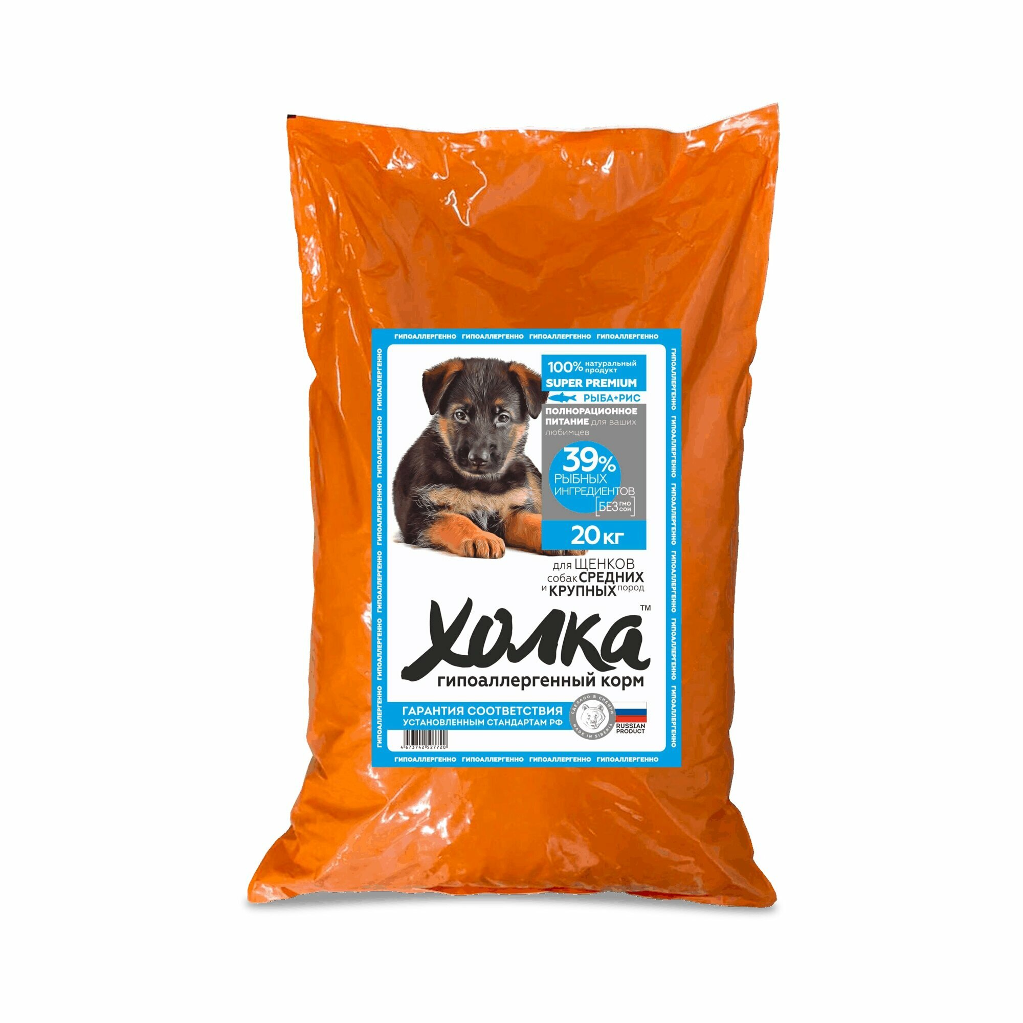 Корм гипоаллергенный холка для щенков средних и крупных пород из рыбы и риса, 20 кг