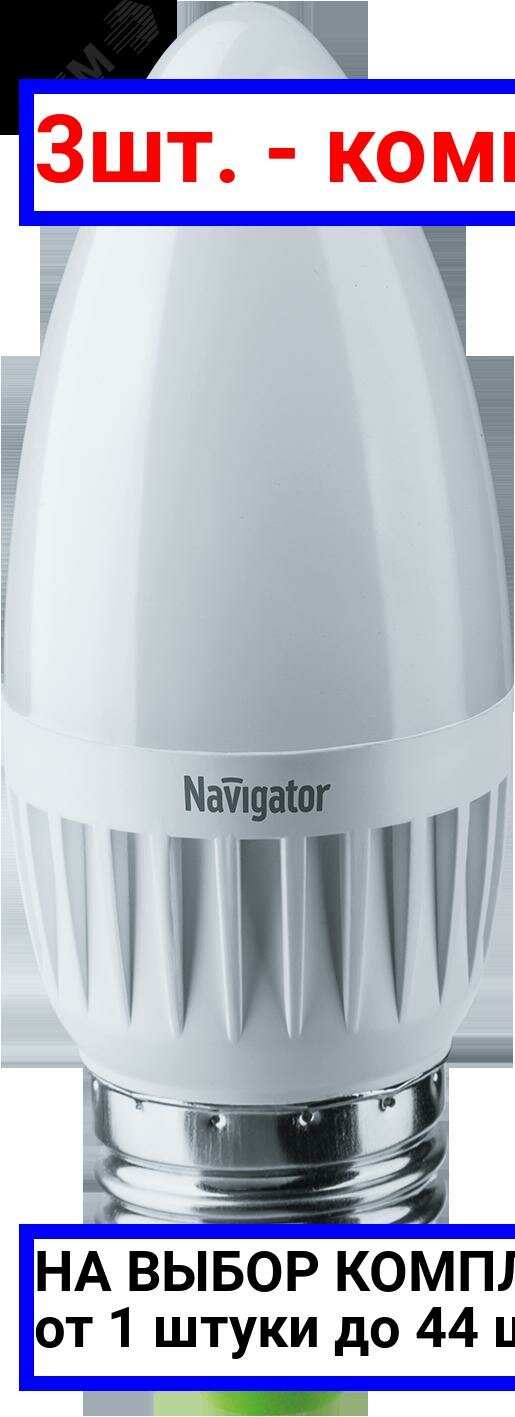 (3 шт.) Светодиодная лампочка Navigator C37 7Вт 230В 2700K E27