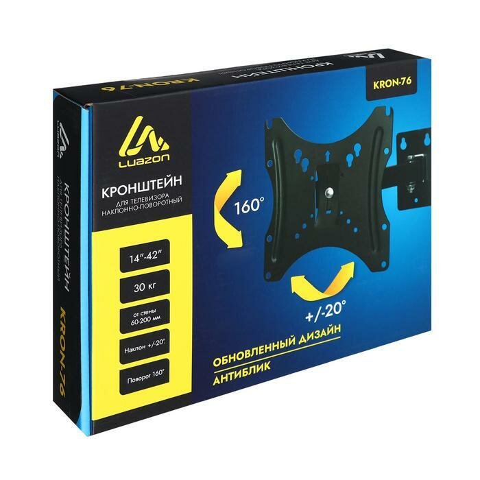 Кронштейн Luazon KrON-76, для ТВ, наклонно-поворотный, 14-42", 60-200 мм от стены, чёрный 3937403