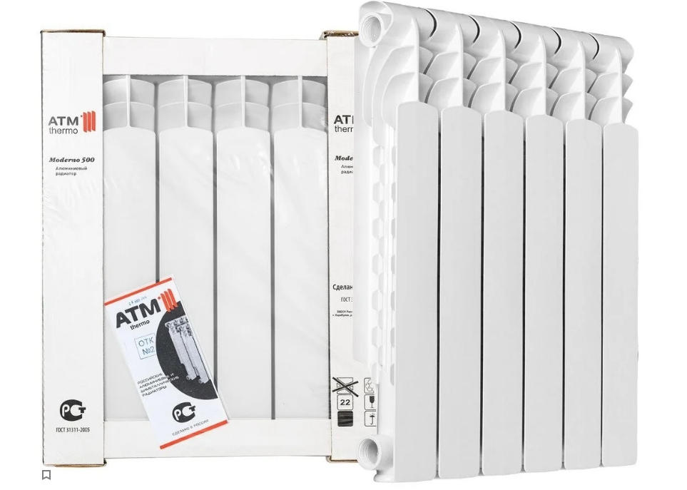 СохранитьРадиатор алюминиевый ATM Thermo Moderno 500 мм 10 секций 1" боковое подключение белый интересное:
