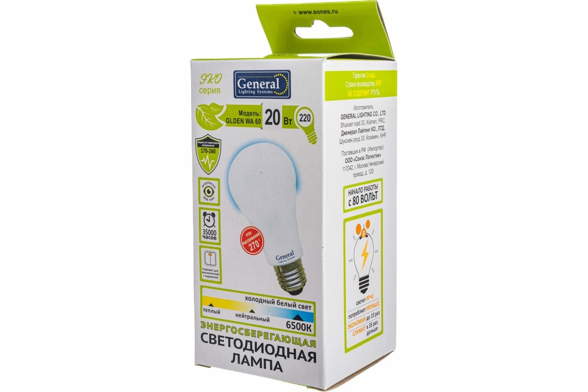 Лампочка светодиодная 20 Вт, 690100 General GLDEN-WA60-20-230-E27-6500