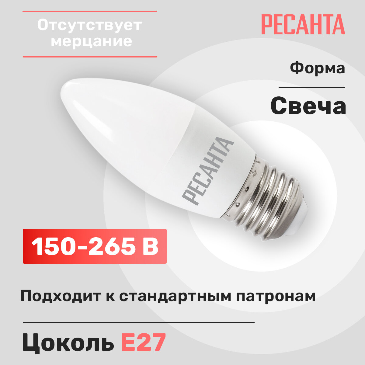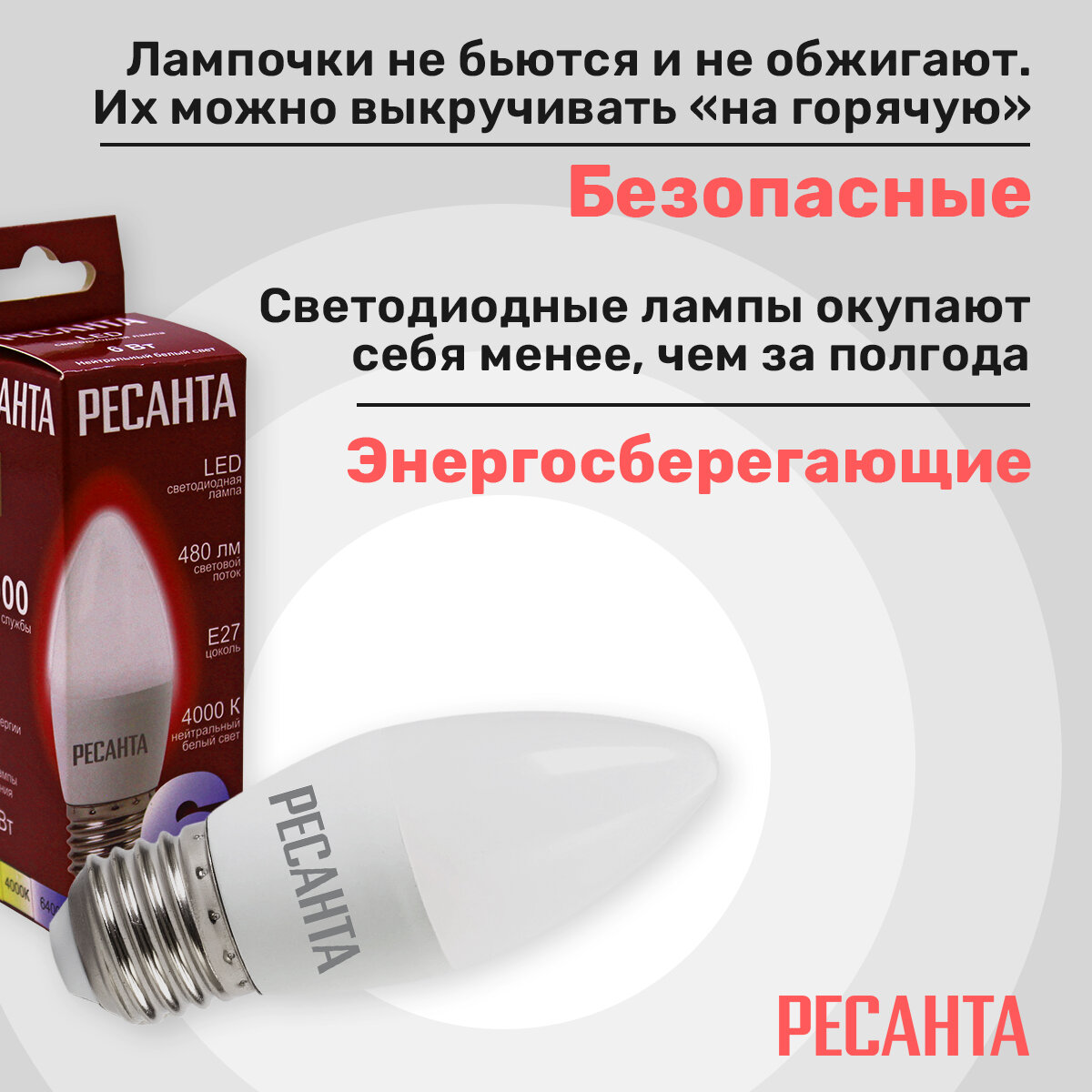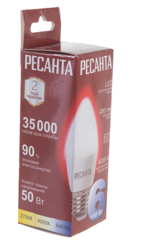 Лампа светодиодная LL-R-C37-6W-230-4K-E27 (свеча6Втнейтр.Е27) Ресанта интересное: