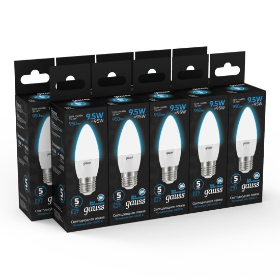 Светодиодная лампа Gauss Свеча 9.5W 950lm 6500К E27 LED 1/10/50 интересное: