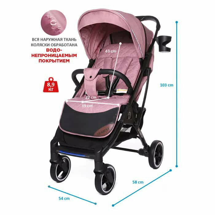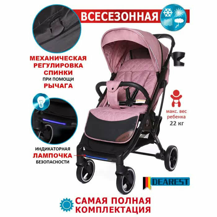 Купить Коляска прогулочная Dearest 819 дымчато-розовый/черная рама