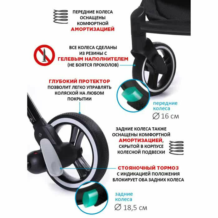 | Колеса | 4 шт., гелевые, 16-18.50 см |