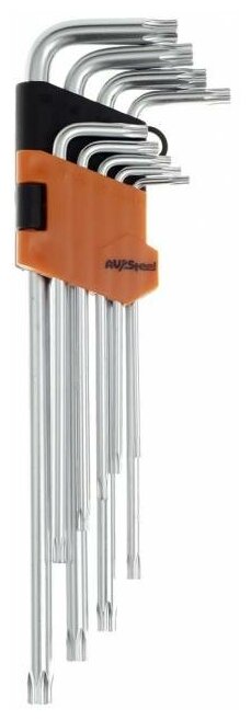 Набор ключей Г-образных TORX экстрадлинных с отверстием TH10-TH50 "AV Steel" 9 предметов