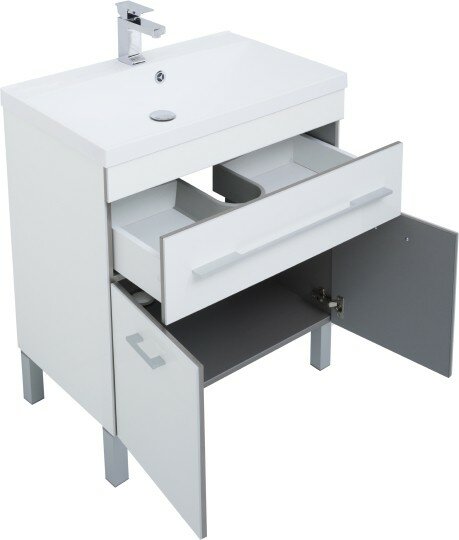Тумба с раковиной Aquanet Верона NEW 75 белый (напольная 1 ящик 2 дверцы)