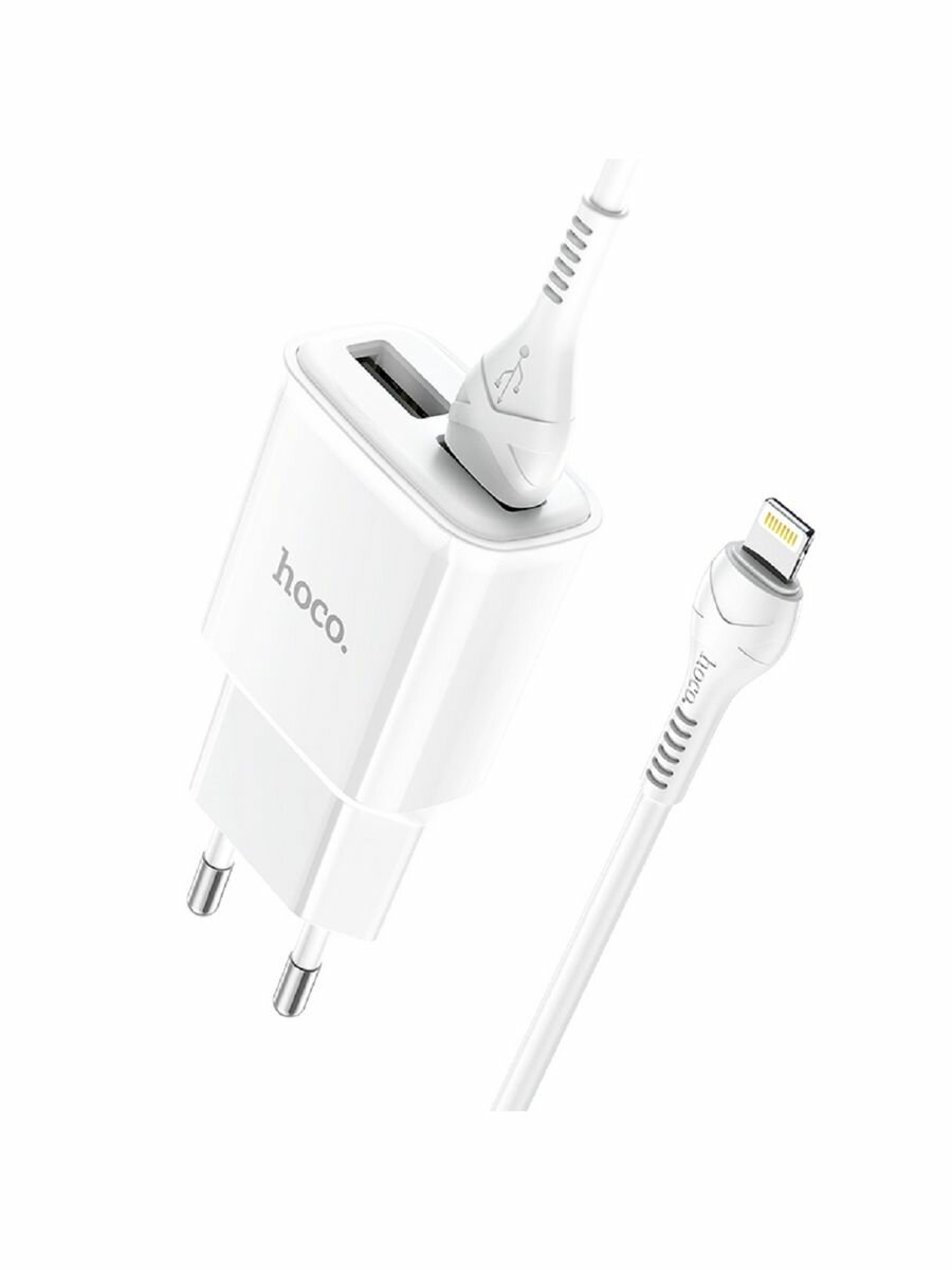 Сетевое зарядное устройство HOCO C88Ai White + кабель lightning, белый