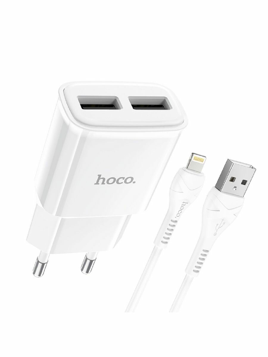 Hoco Сетевое зарядное устройство Hoco C88A, 2 USB, 2.4 А, кабель Lightning - USB, 1 м, белый