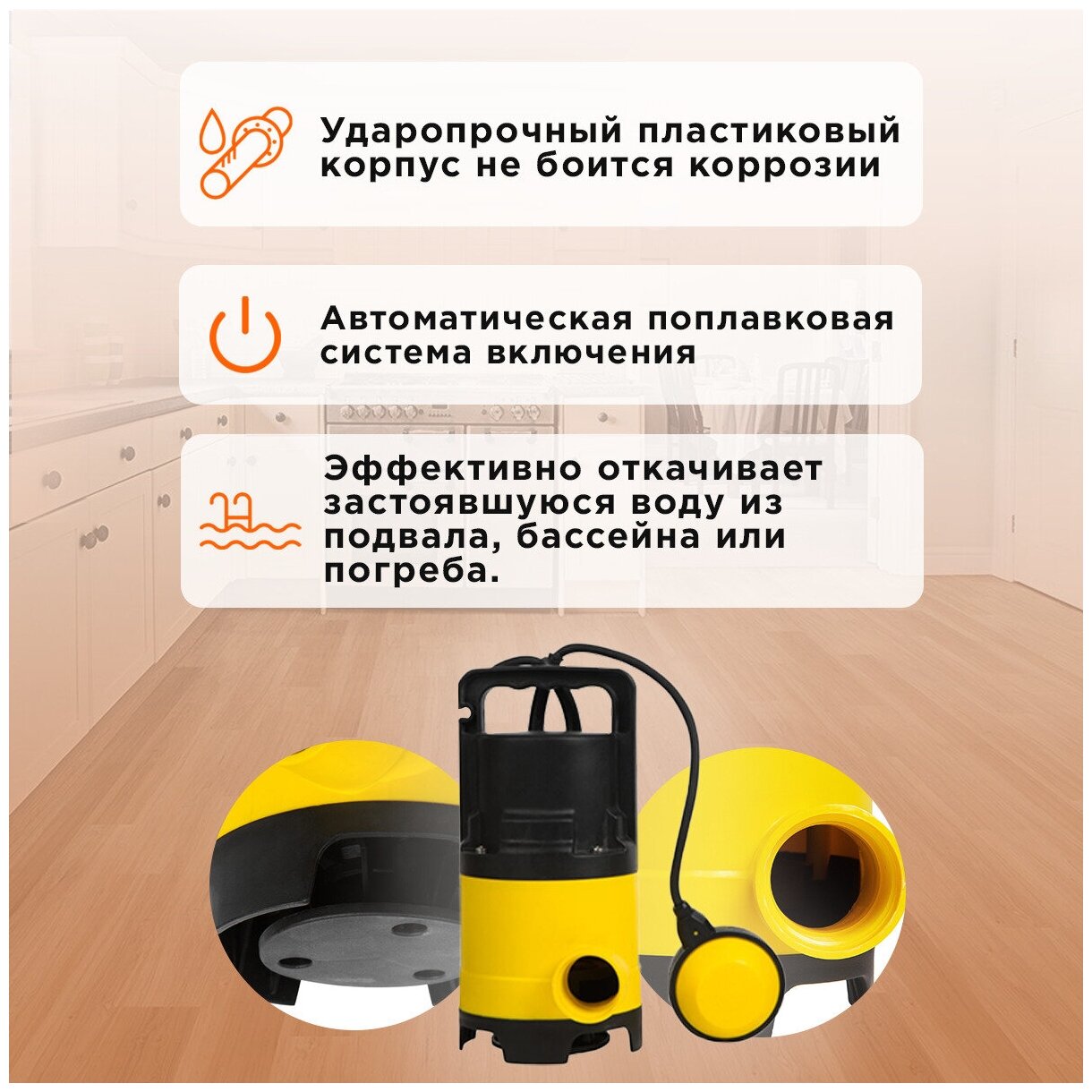 Насос погружной дренажный для грязной воды, 7000 л/час интересное: