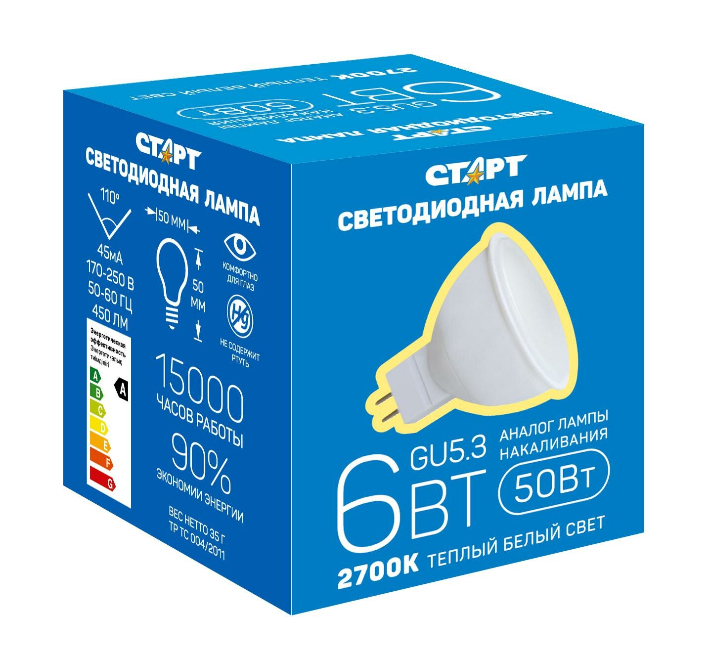 Лампа светодиодная Старт 6W GU5.3 2700k тепл.бел. спот интересное:
