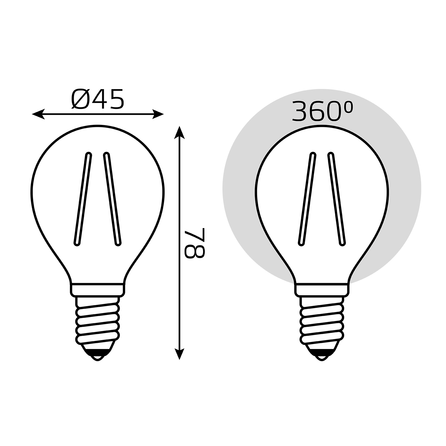 (10 шт.) Светодиодная лампочка Gauss Filament Шар G45 E14 9W(710lm) 4100K 4K прозр. 80x45 филамент (нитевидная) 105801209