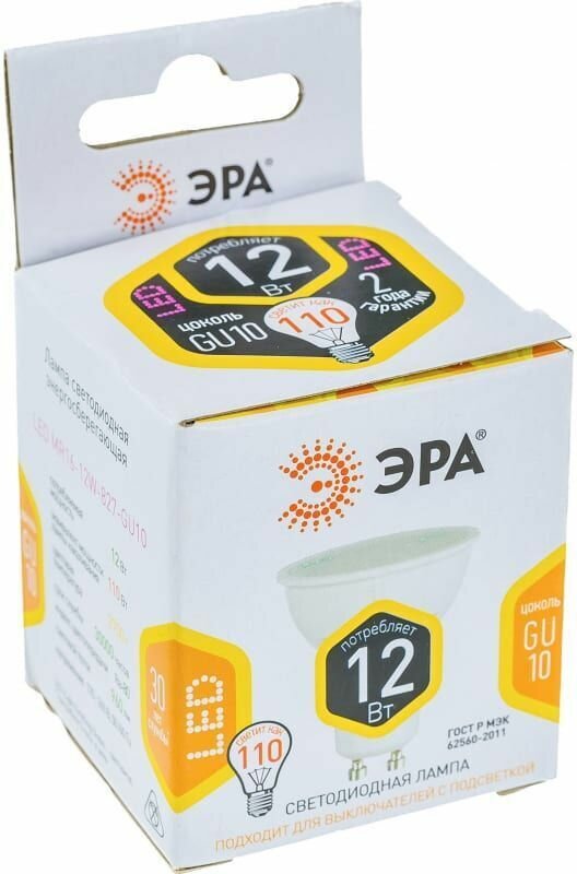 Лампа светодиодная ЭРА Б0040889, GU10, MR16, 12 Вт, 2700 К